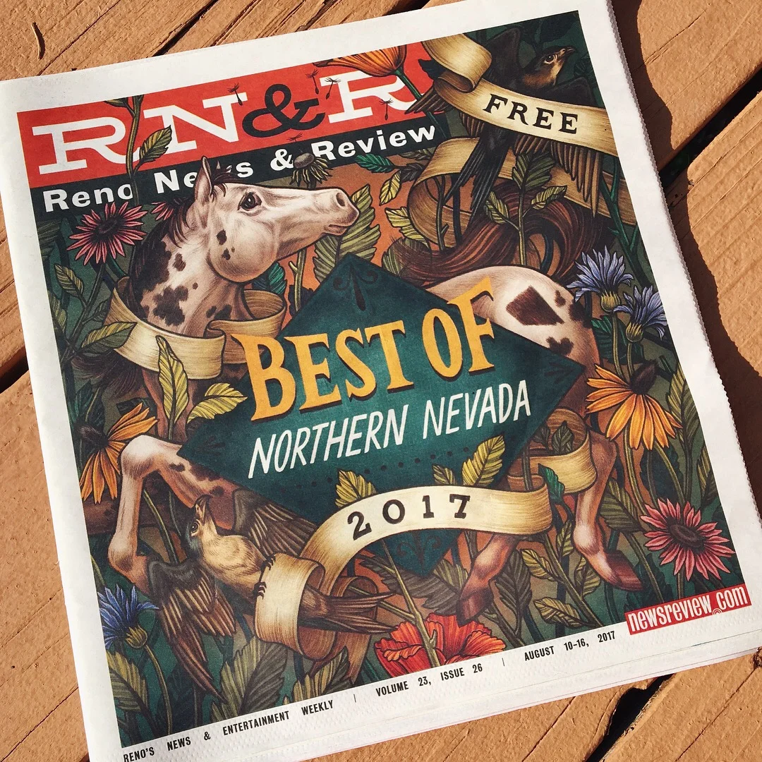 Series of illustrations for Reno News & Review's annual Best of Northern Nevada 2017 issue. Along with the cover, there are nine spots for the different Best Of categories, each illustrating different plants and animals of Northern Nevada.