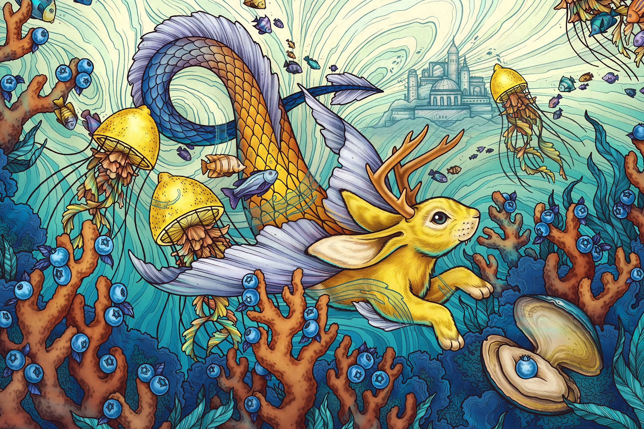 Illustration for Great Basin Brewing Co.’s seasonal beer, ‘Mystic Voyage’ blueberry and lemon Sour Ale. This beer has a crushable ABV and a fruit forward flavor, sour with a hint of sweetness and a dramatic violet color.